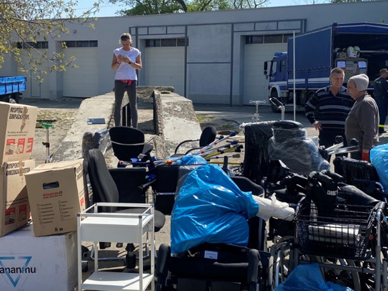 Zahlreiche Rollstühle, Untersuchungsliegen, Rollatoren und dank der Fa. Bauche in Ostholstein auch Hunderte von Orthesen und Gehhilfen wurden dankbarst entgegengenommen.